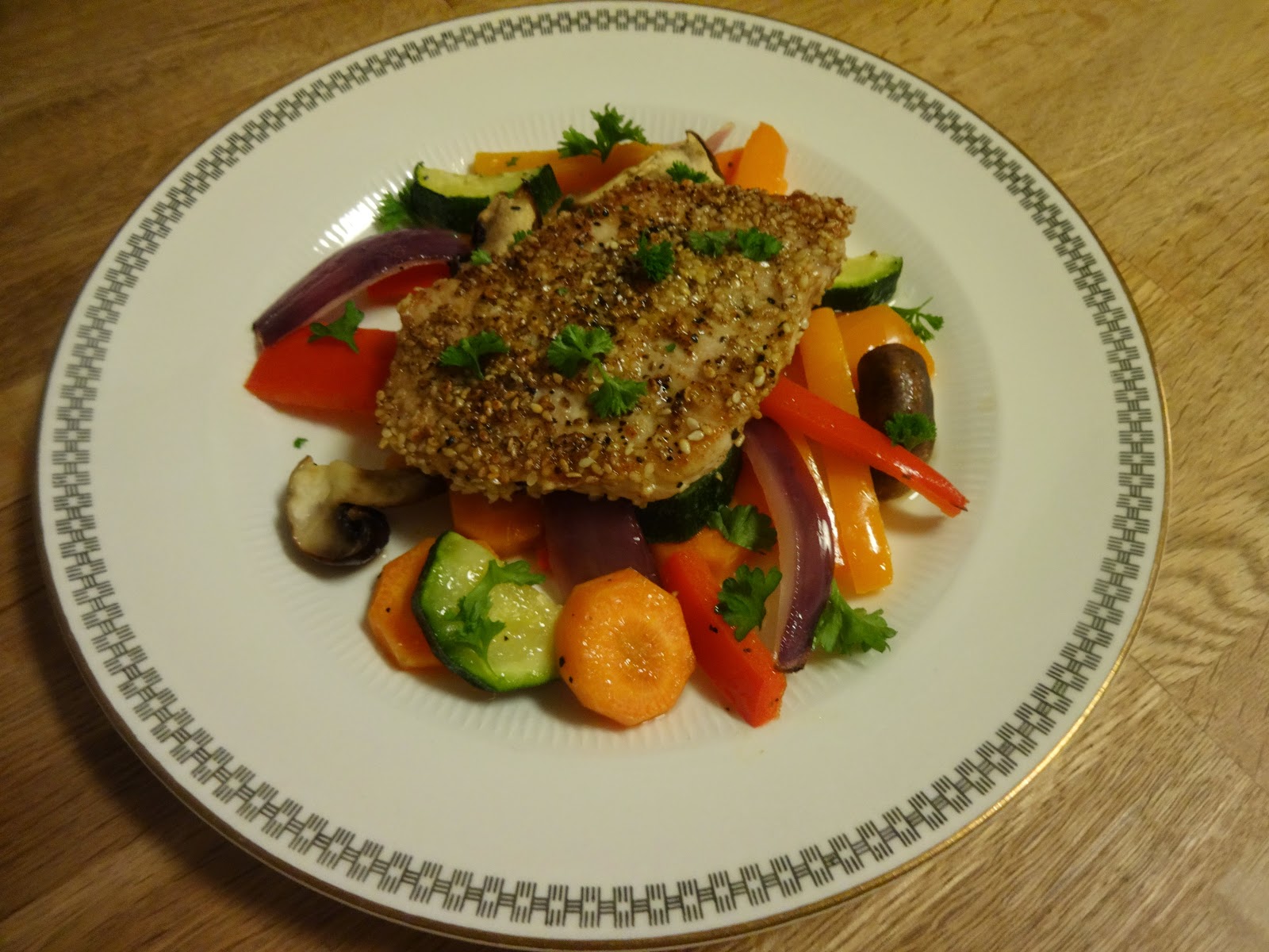 Svinekoteletter med sesamfrø & ciderbakte grønnsaker ! |