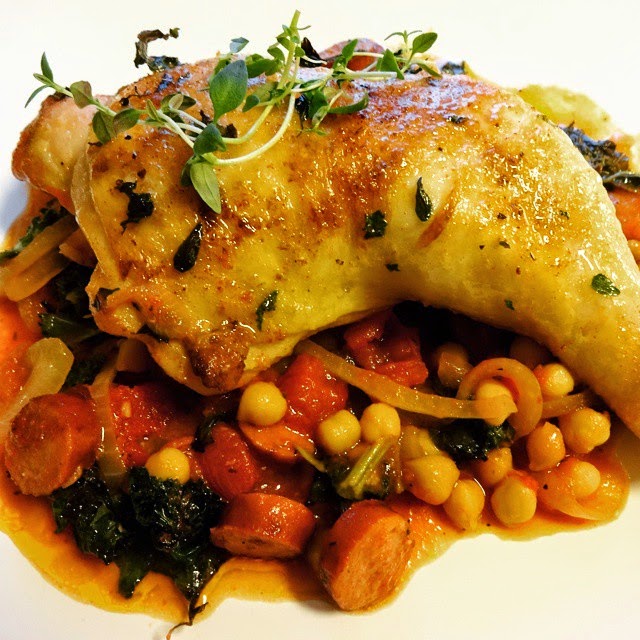 Braiserte kyllinglår, chorizo, kikerter og grønnkål !!