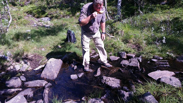 Strålende sol fra blå himmel, rennende bekker, sau og lam på beite, fuglekvitter, smale stier -som går opp og ned.... Kjenner at man bruker noen andre muskler enn når man går på flat asfalt.